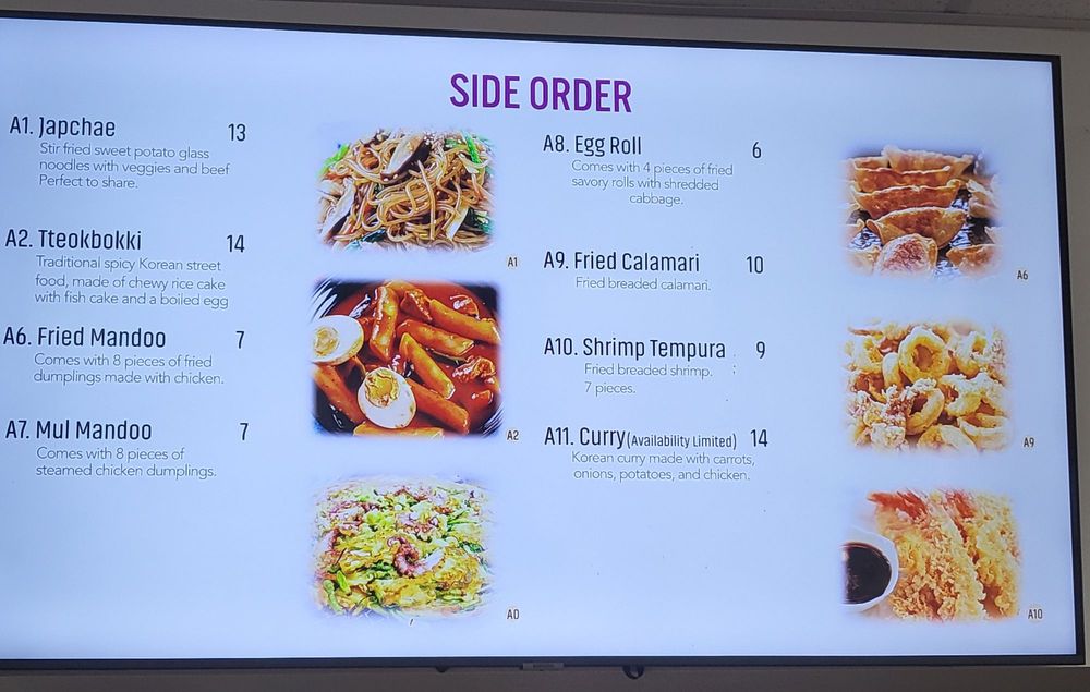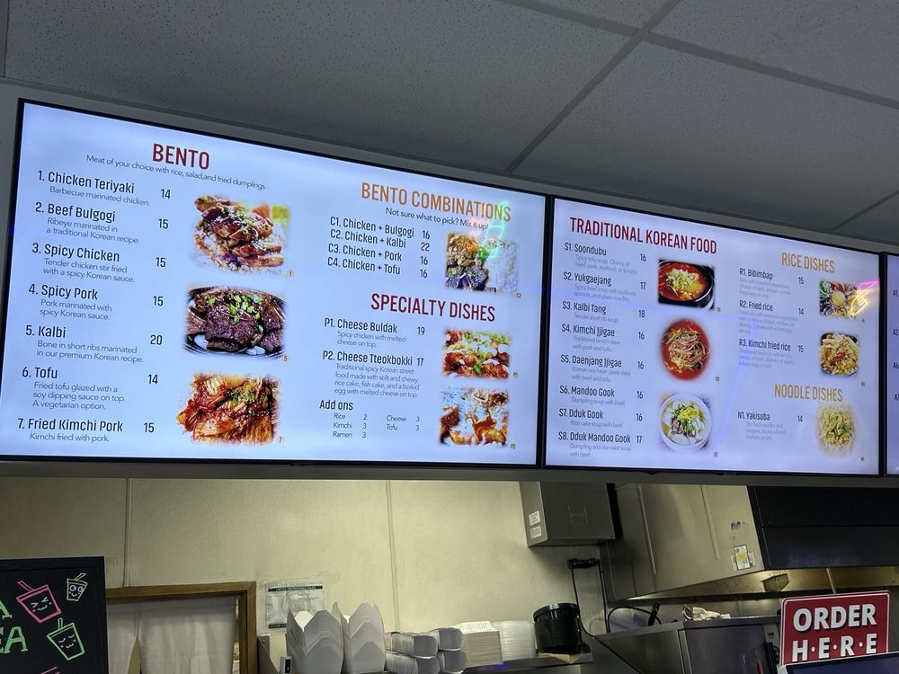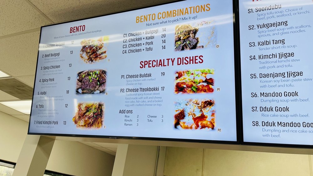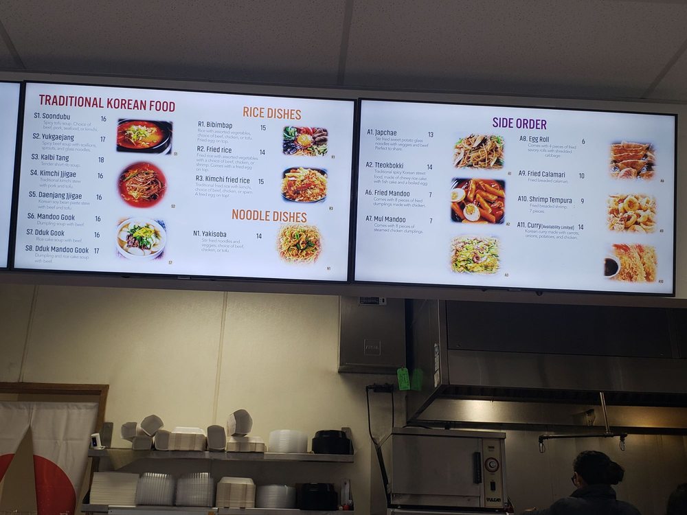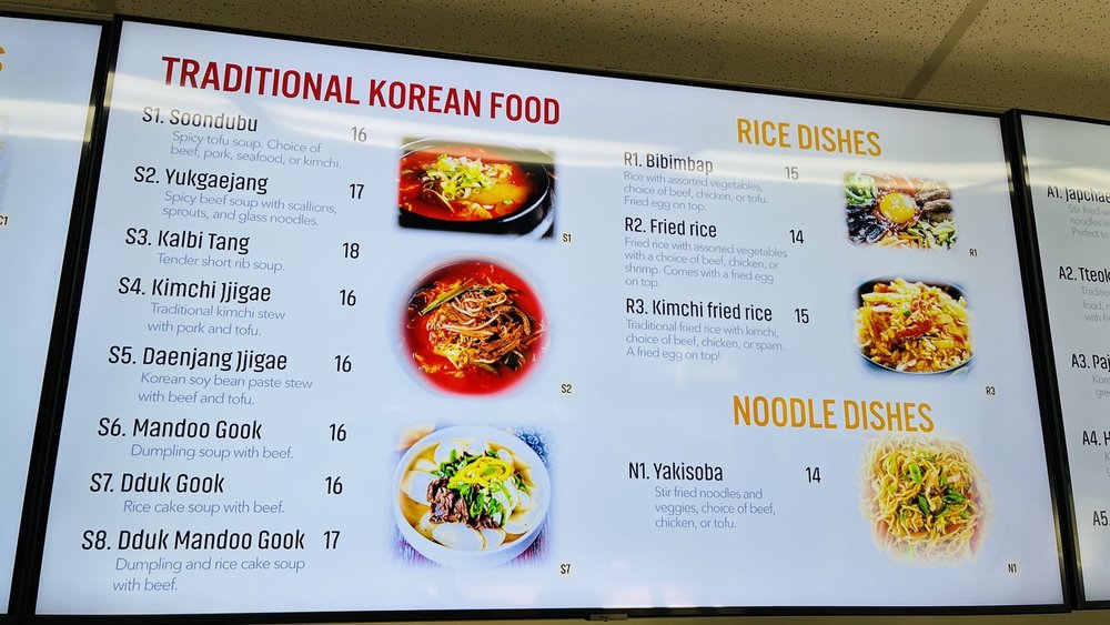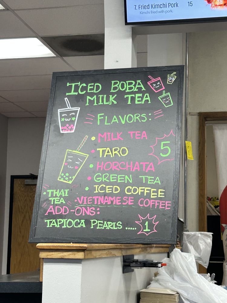 Complete your meal with delicious add-ons like kimchi or the spicy Korean chili oil that packs a punch. For a refreshing drink, try an Iced Boba Tea in flavors such as Taro or Green Tea. The casual atmosphere, accented by pop music, creates a welcoming vibe, perfect for groups or takeout enthusiasts. While the decor may be minimal, the focus here is on satisfying the palate with quality dishes that evoke a sense of comfort and community.